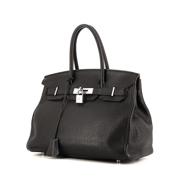 Elegant Hermes Birkin 30 cm handbag in black leather taurillon clémence, hardware in palladium metal, double handle in black leather allowing the bag to be worn in the hand.