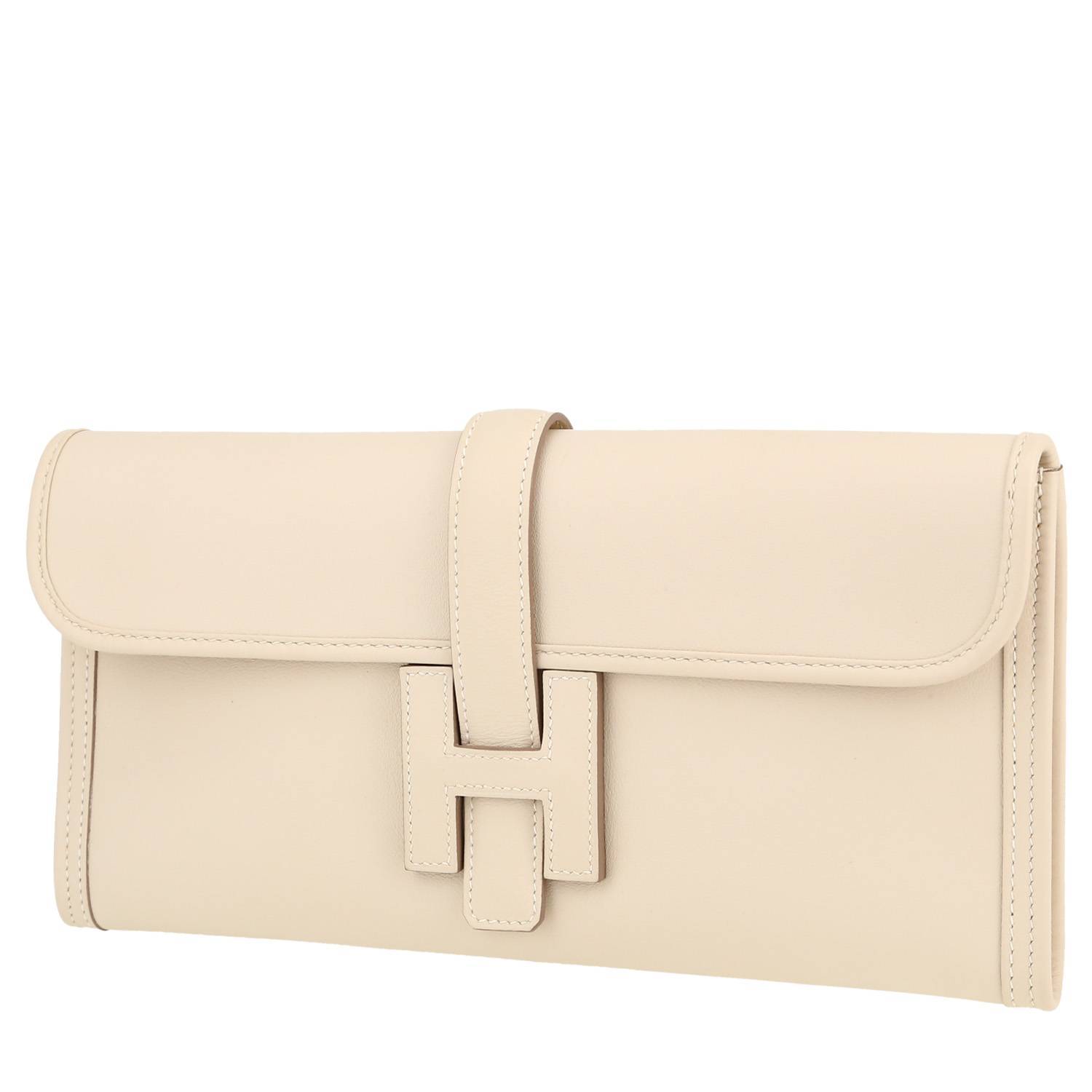 Wonderful Hermès Jige pouch in Craie Swift leather.