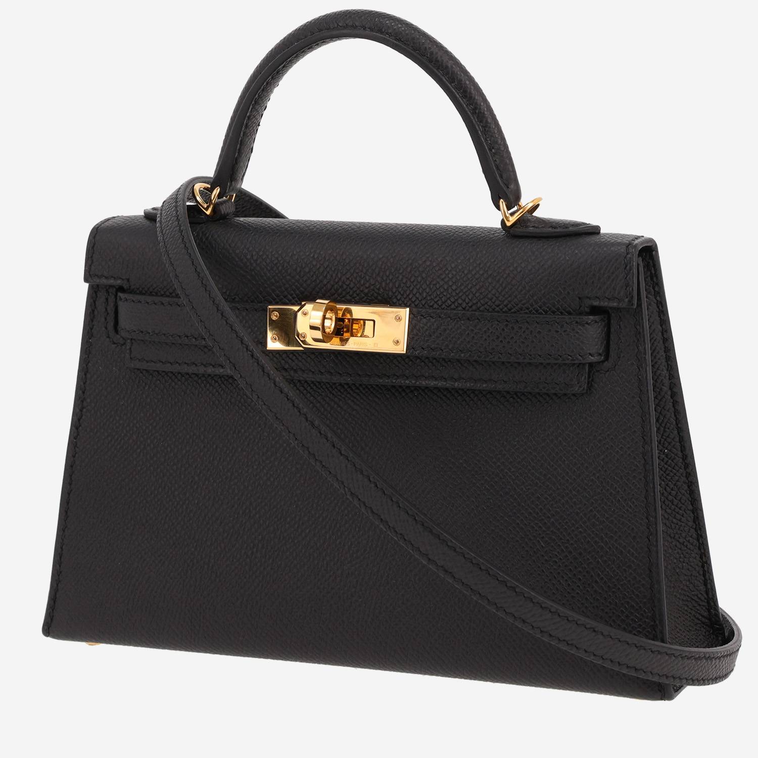 Hermès Kelly 20 cm shoulder bag in black epsom leather, hardware in gilt metal, top handle in black leather, one removable strap in black leather allowing the bag to be worn in the hand or on the shoulder or accross the body.