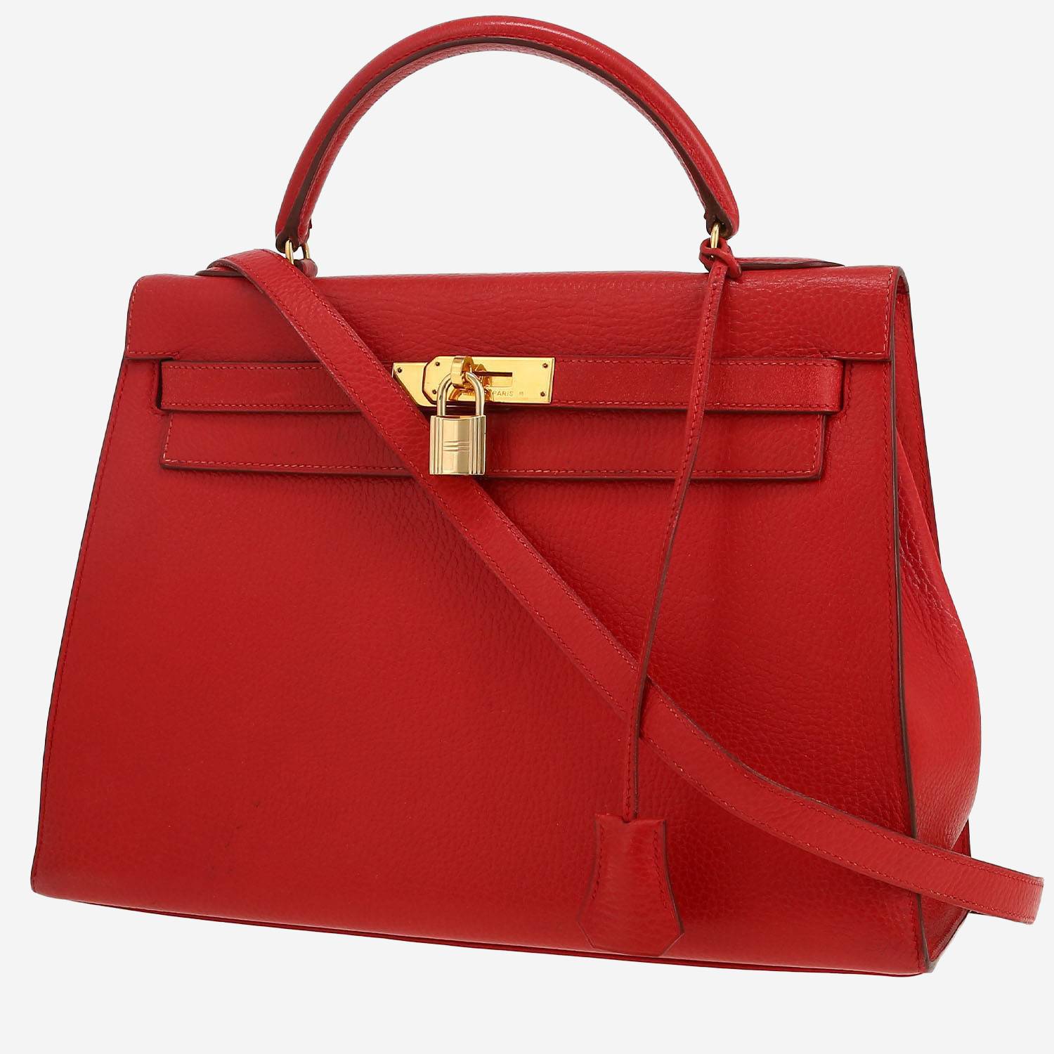 Magnificent Hermès Kelly 32 cm handbag in red Ardenne leather, hardware in gilt metal, simple handle in red leather, red leather removable strap to be worn accross the body allowing the bag to be worn in the hand or on the shoulder.