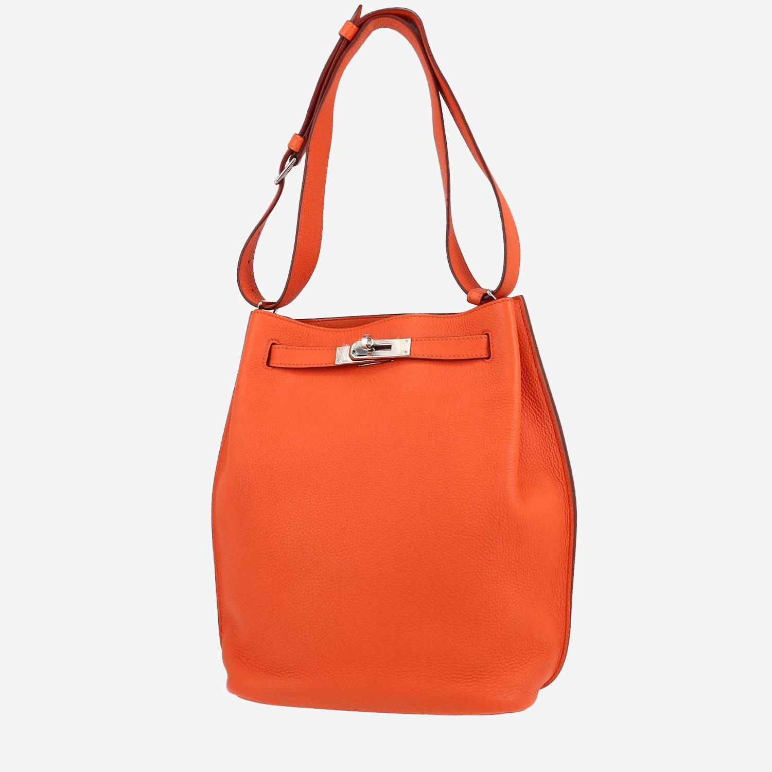 Superb Hermès So Kelly shoulder bag in Poppy orange leather taurillon clémence, hardware in palladium metal, one adjustable shoulder strap in Poppy orange leather taurillon clémence allowing the bag to be worn in the hand or on the shoulder.