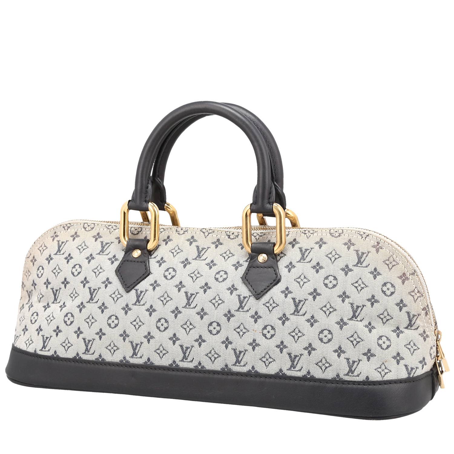 Original Louis Vuitton Alma handbag in grey monogram canvas, hardware in gilt metal, double handle in black leather allowing the bag to be worn in the hand.