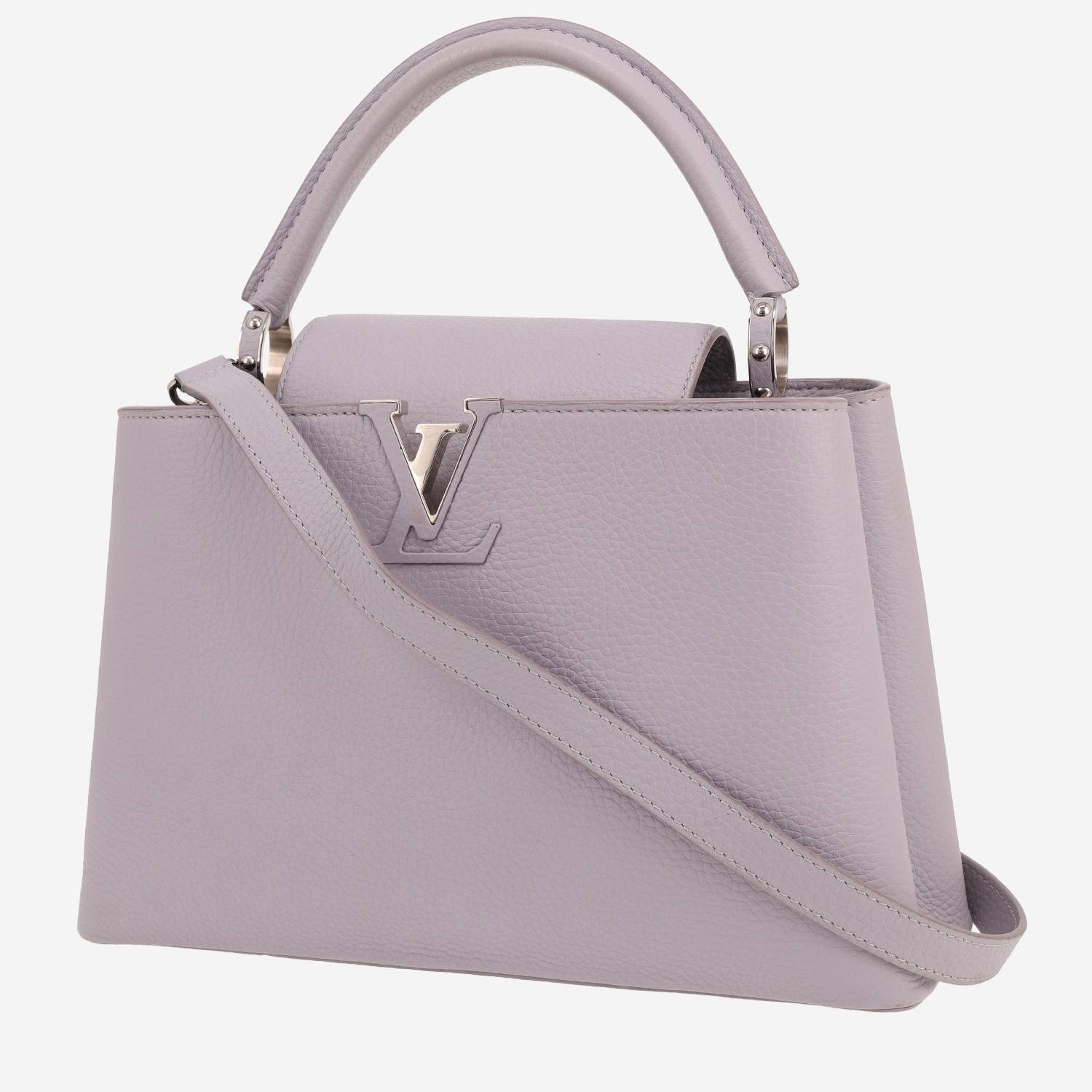 Unavoidable Louis Vuitton Capucines MM handbag in purple leather taurillon clémence, hardware in silver metal, top handle in purple grained leather, purple grained leather removable strap to be worn accross the body allowing the bag to be worn in the hand or on the shoulder or accross the body.