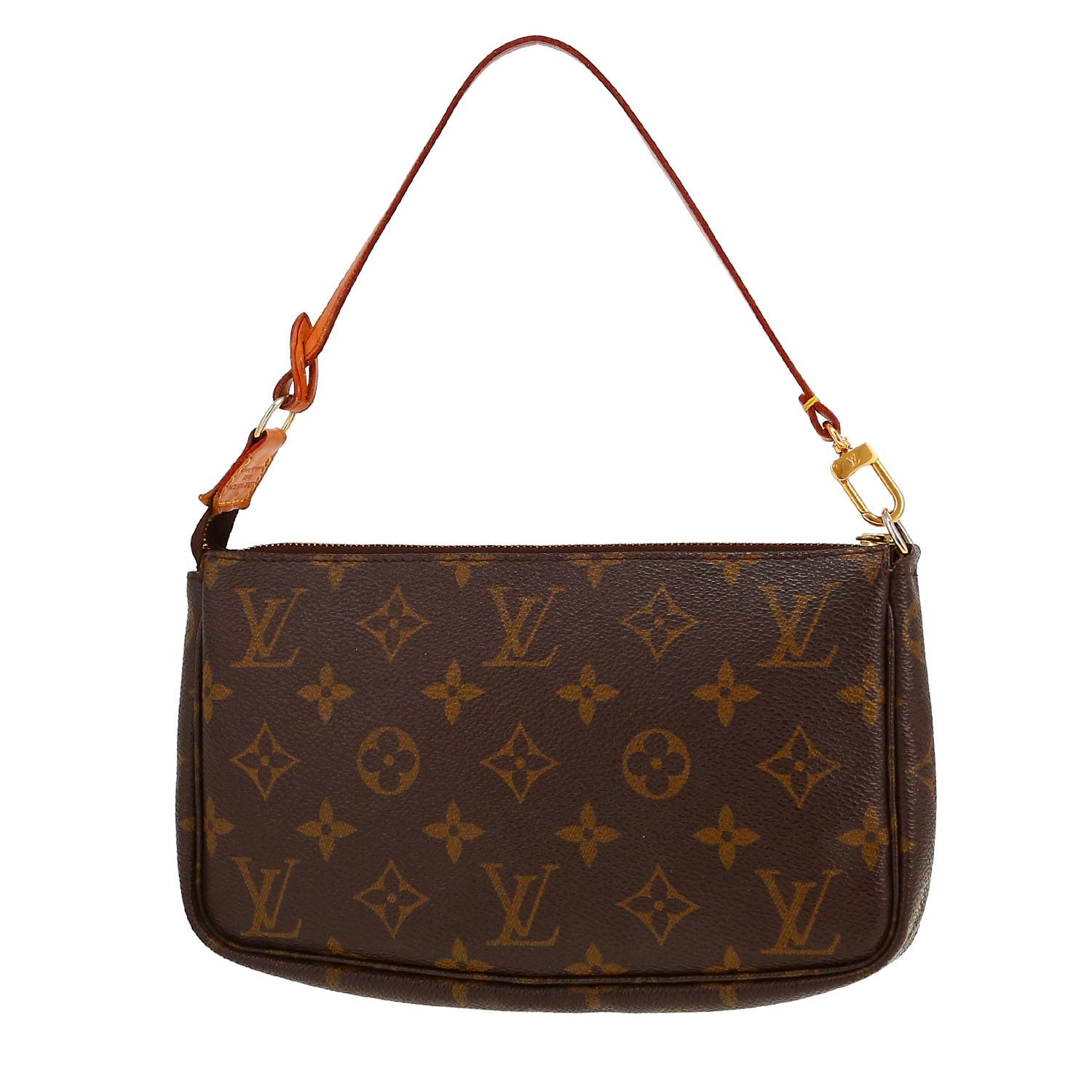 Wonderful Louis Vuitton Pochette accessoires pouch in brown monogram canvas, hardware in gilt metal, one removable strap in natural leather allowing the bag to be worn in the hand or on the shoulder.