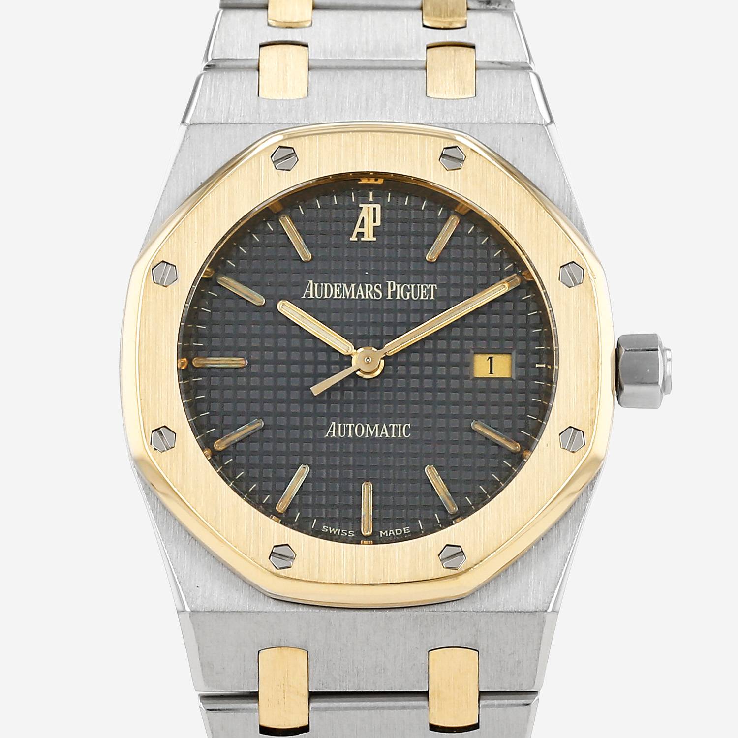 Gold and stainless steel Audemars Piguet Royal Oak wristwatch. Octogonal case in gold and stainless steel, screwed caseback, yellow gold screwed bezel, canned crown.