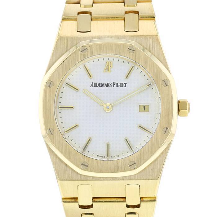 Yellow gold Audemars Piguet Royal Oak wristwatch. Octogonal case in yellow gold, screwed caseback, yellow gold screwed bezel, screw-down crown.