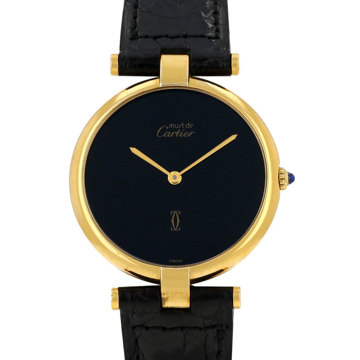 Vermeil Cartier Must Vendôme wristwatch. Round case in vermeil, screwed caseback, canned crown set with a sapphire cabochon.