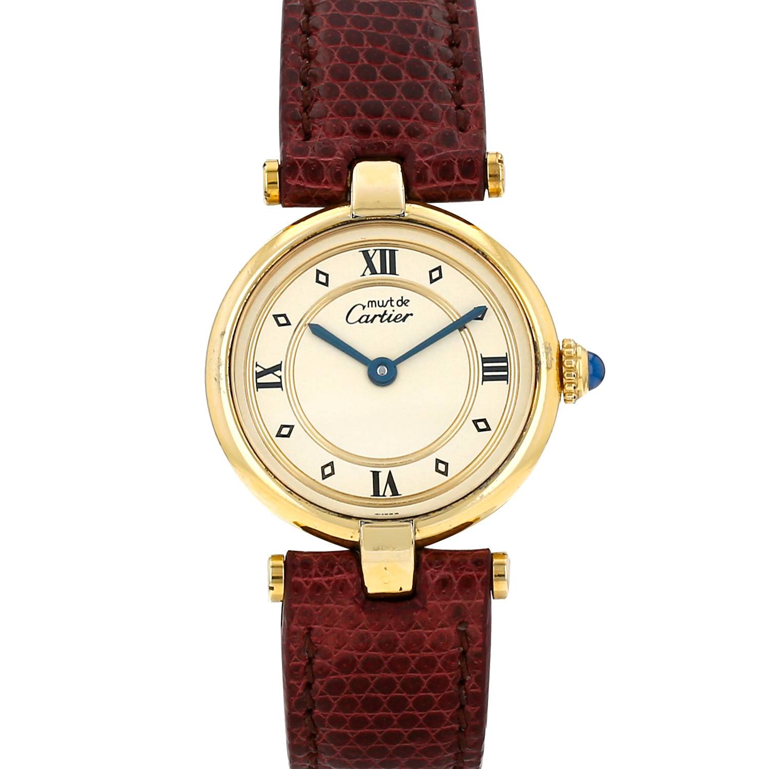 Vermeil Cartier Must Vendôme wristwatch. Round case in vermeil with vendôme ties, screwed caseback, canned crown set with a sapphire cabochon.