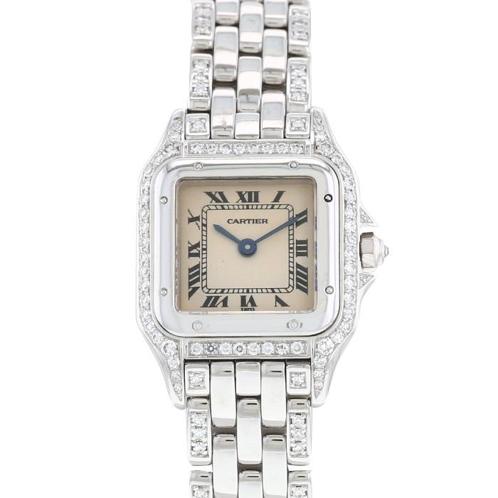 White gold Cartier Panthère Joaillerie wristwatch. Square case in white gold with diamonds, screwed caseback, screwed bezel, crown set with a diamond cabochon.