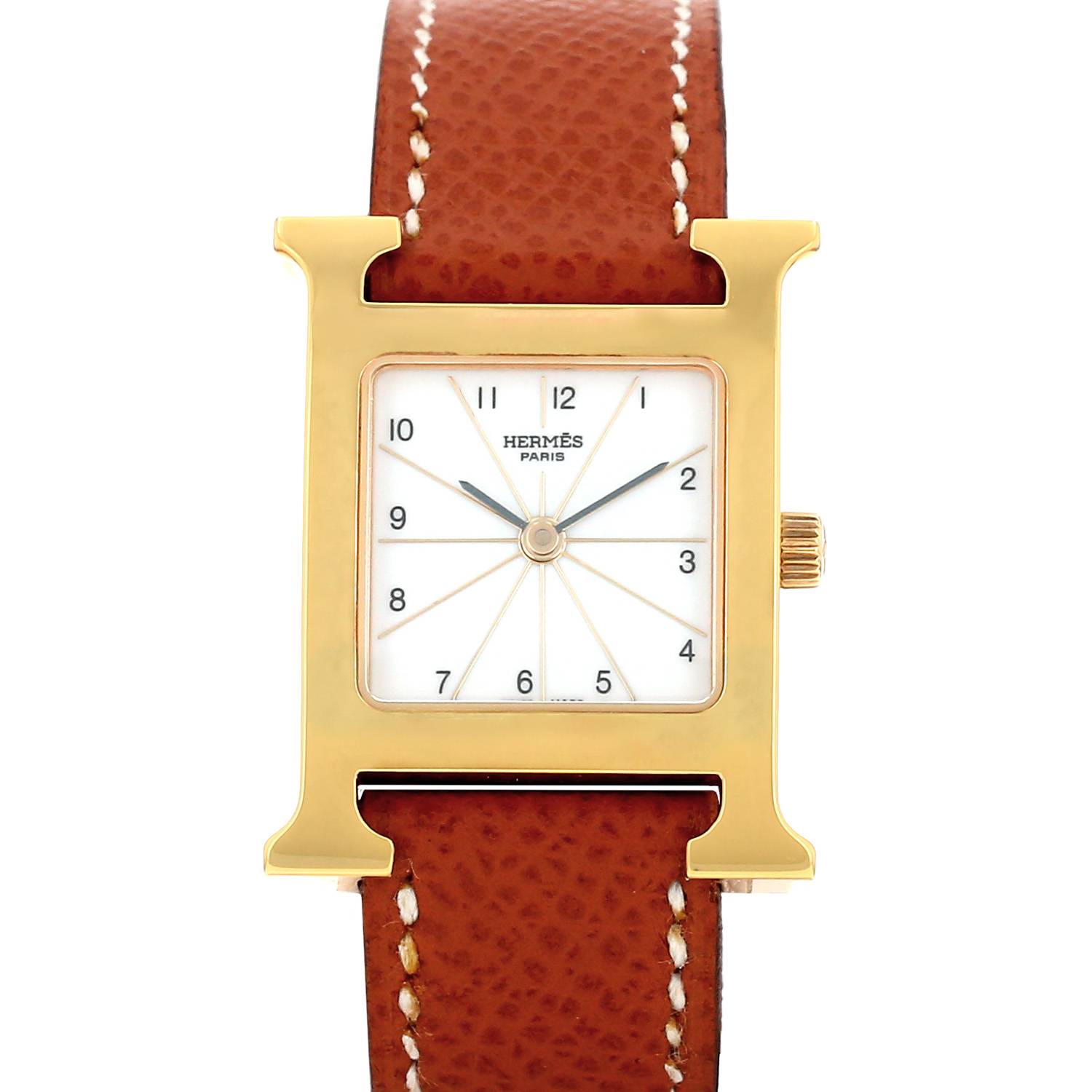 Gold plated Hermès Heure H wristwatch. H case in gold plated, screwed caseback, canned crown.