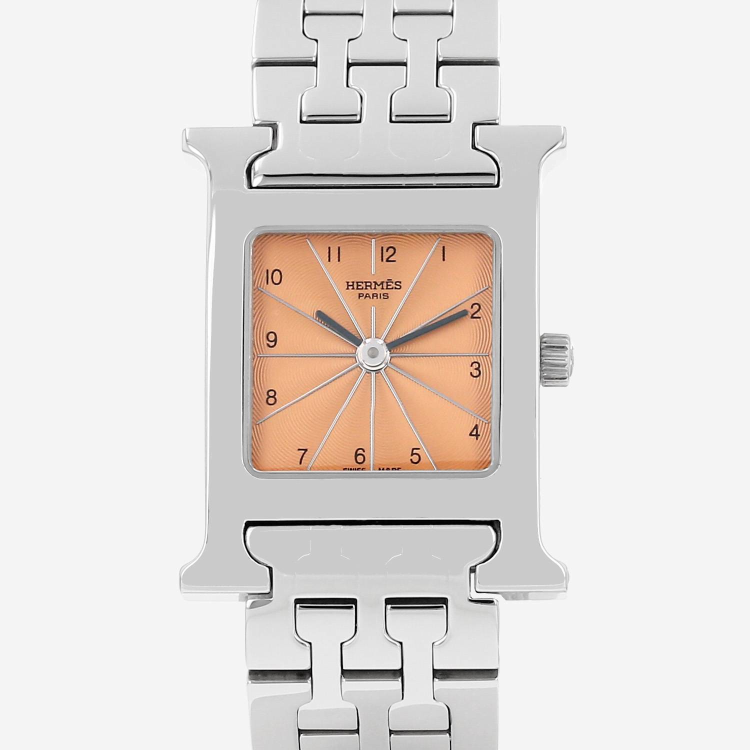 Stainless steel Hermès Heure H wristwatch. H case in stainless steel, screwed caseback, canned crown.