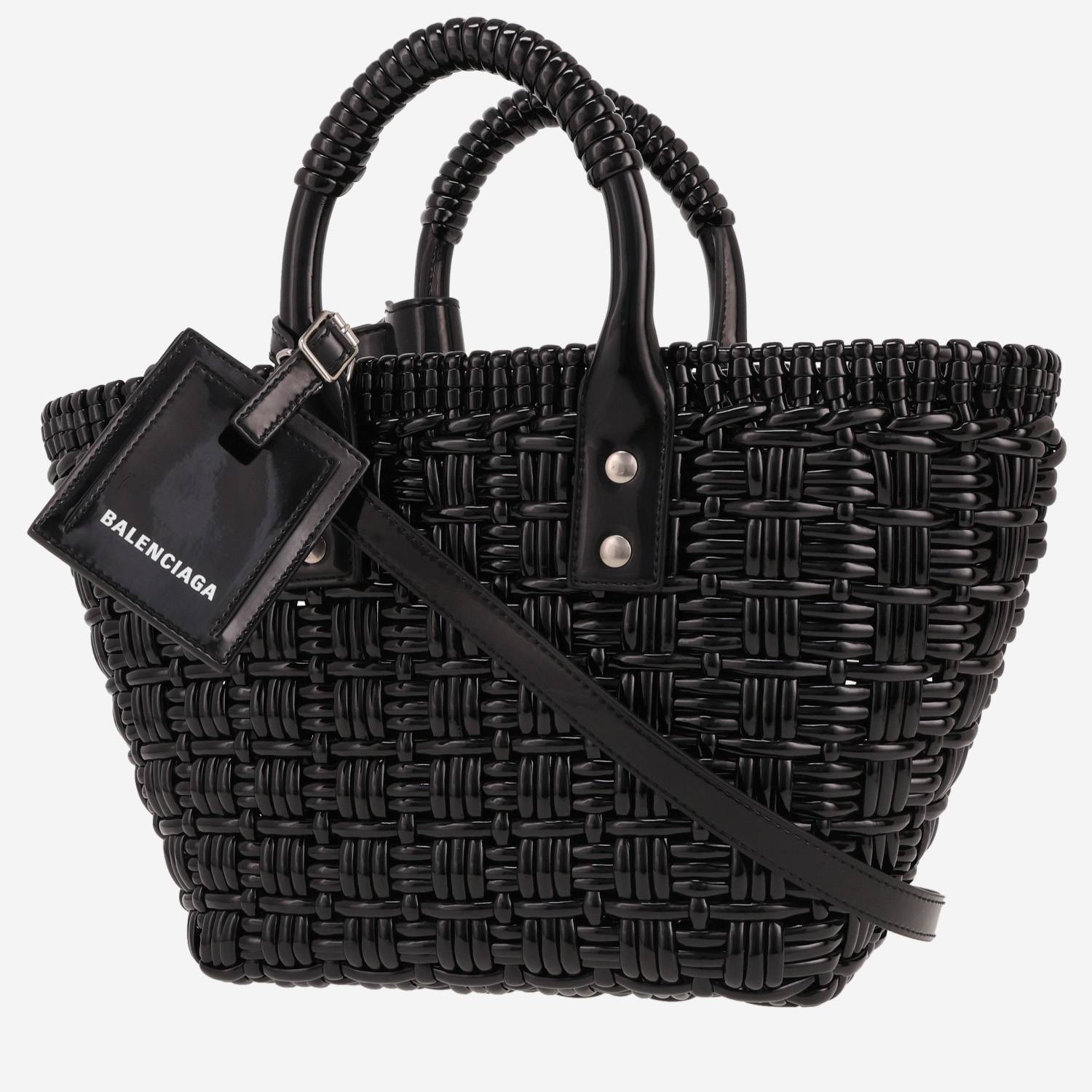 Elegant Balenciaga Bistrot Panier shopping bag in black leather, hardware in silver metal, double handle in black leather, one shoulder strap in black leather allowing the bag to be worn in the hand or on the shoulder or accross the body.