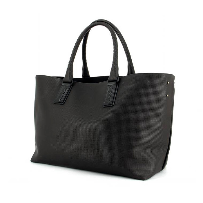 Bottega Veneta shopping bag in grey synthetic fabric and black braided leather Collector Square Ref: 30 09 89