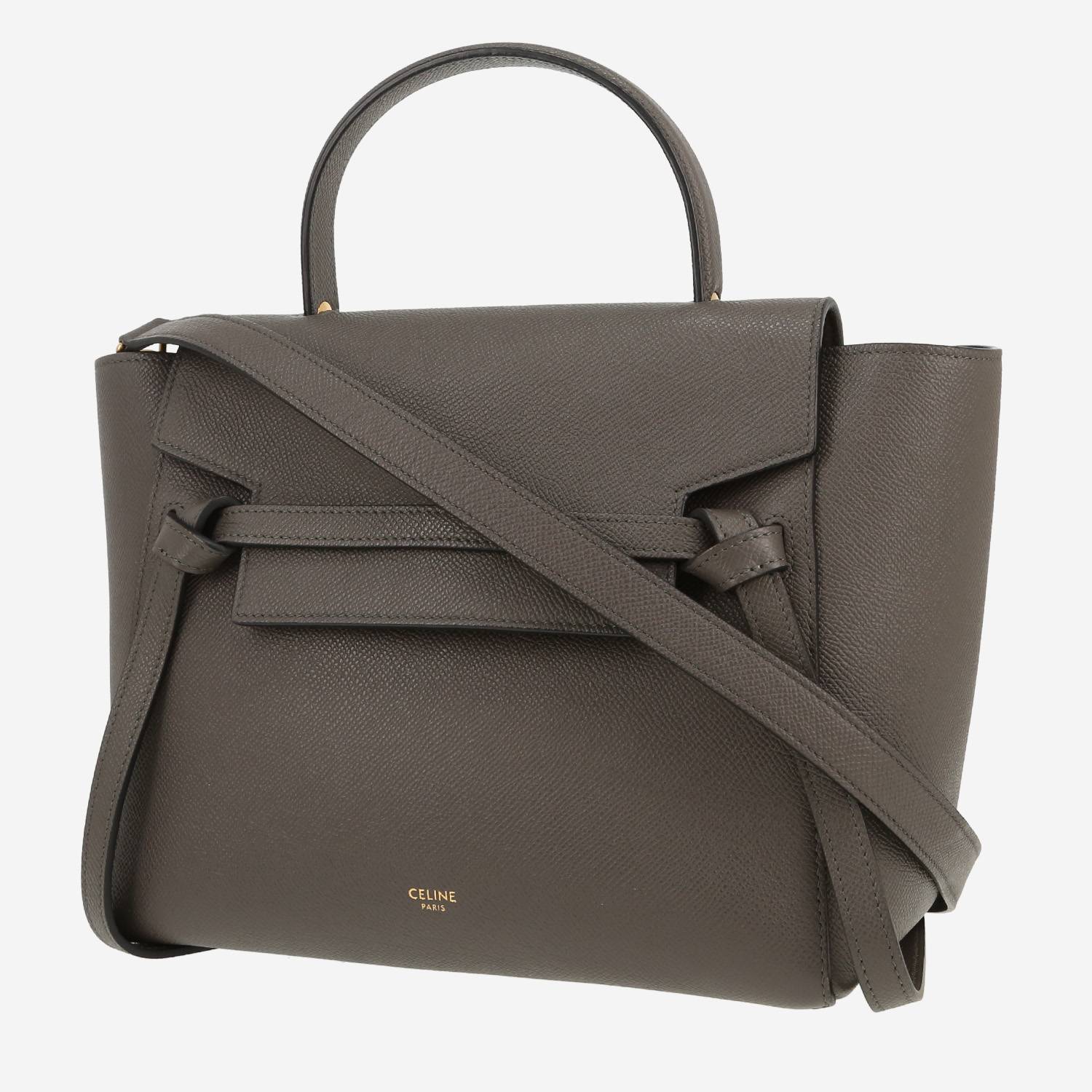 Practical Celine Belt Micro shoulder bag in grey grained leather, hardware in gilt metal, simple handle in grey leather, grey leather removable strap to be worn accross the body allowing the bag to be worn in the hand or on the shoulder.