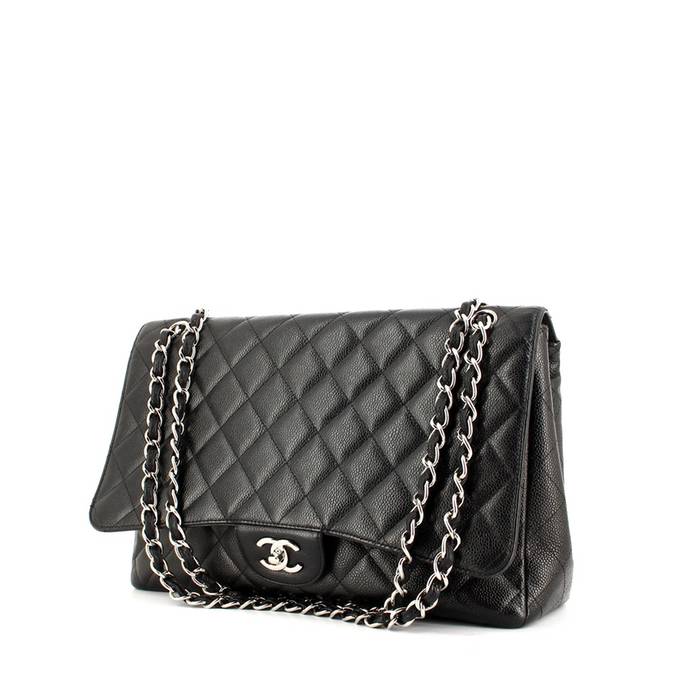 Chanel handbag Timeless maxi jumbo in black quilted grained leather Collector Square Ref: 32 37 09
