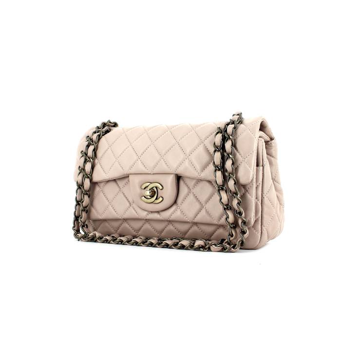 Timeless "Timeless" handbag in purple quilted leather, hardware in metal, handle chain metal interwoven with purple leather allowing the bag to be worn in the hand or on the shoulder.