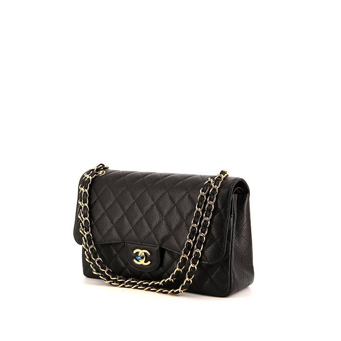 Chanel Timeless jumbo handbag in black quilted grained leather Collector Square Ref: 34 89 34