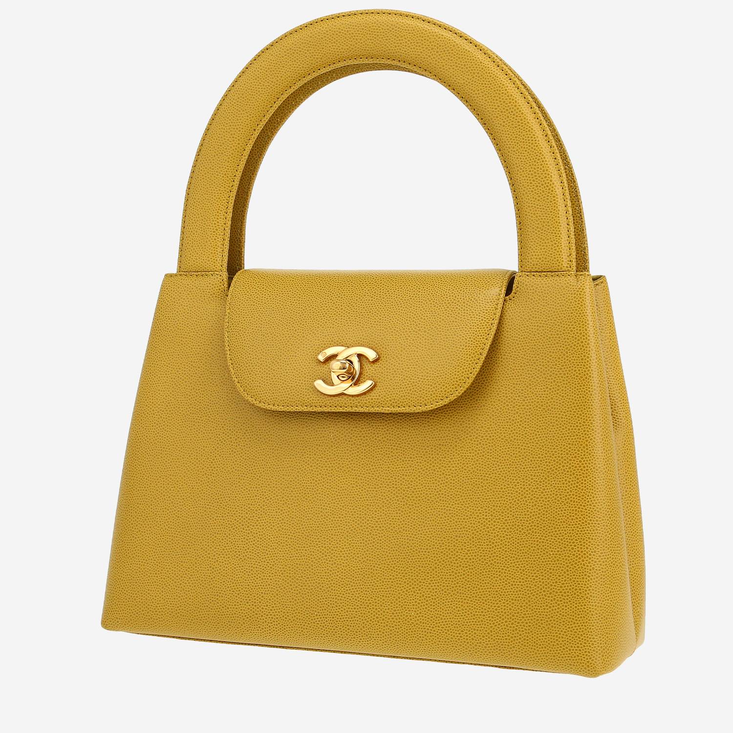 Rare Chanel Vintage handbag in green grained leather, hardware in gilt metal, double handle in green leather allowing the bag to be worn in the hand.