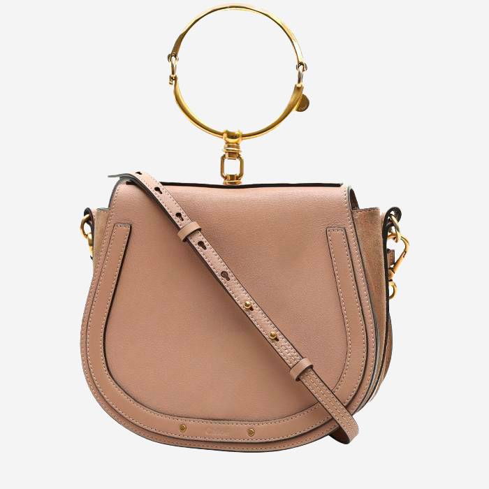 Chloé Nile shoulder bag in beige leather, hardware in gilt metal, simple handle gilt metal, beige leather adjustable strap to be worn accross the body allowing the bag to be worn in the hand or on the shoulder or accross the body.