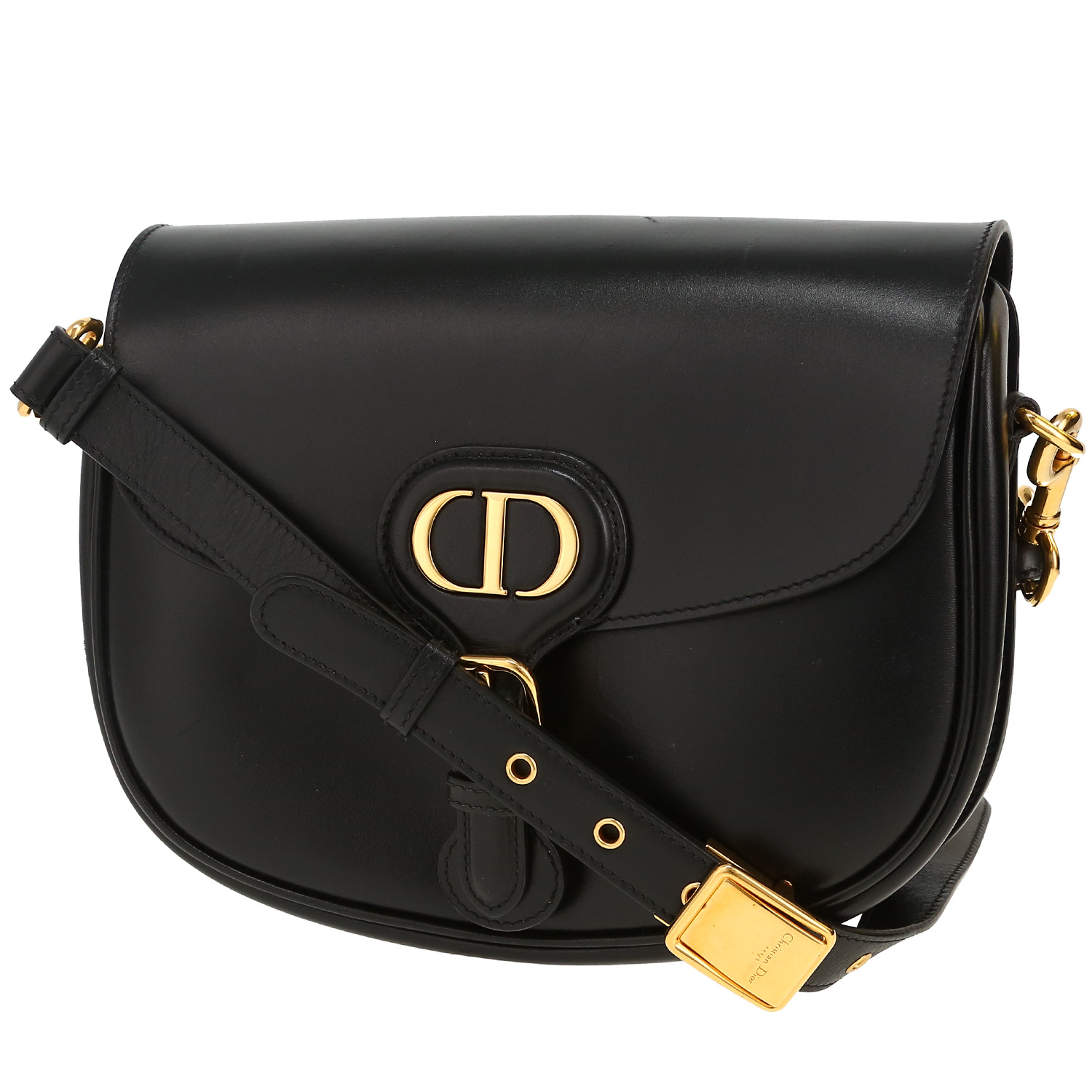 Elegant Dior Bobby shoulder bag in black smooth leather, hardware in gilt metal, black leather adjustable and removable strap to be worn accross the body allowing the bag to be worn on the shoulder or accross the body.