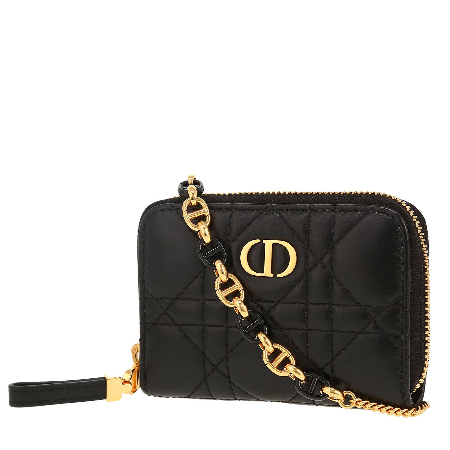 Wonderful mini Dior Caro shoulder bag in black leather cannage, hardware in gilt metal, one chain strap allowing the bag to be worn on the shoulder.