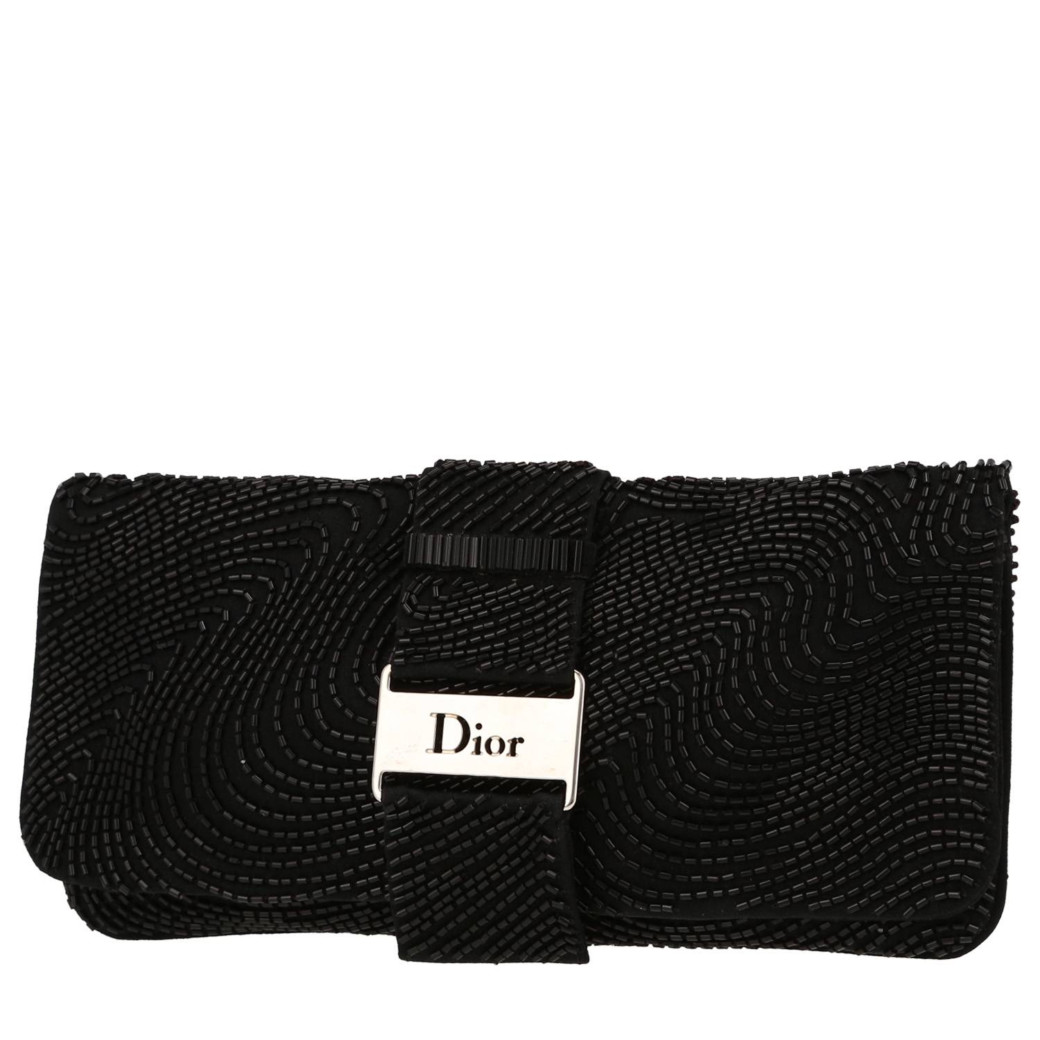Very elegant Dior pouch in black satin, hardware in silver metal.
