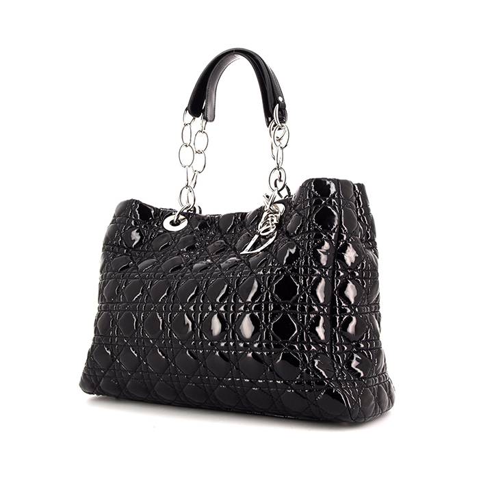 Dior Dior Soft handbag in black patent leather cannage, hardware in silver metal, double handle in black patent leather and silver metal allowing the bag to be worn in the hand or on the shoulder.