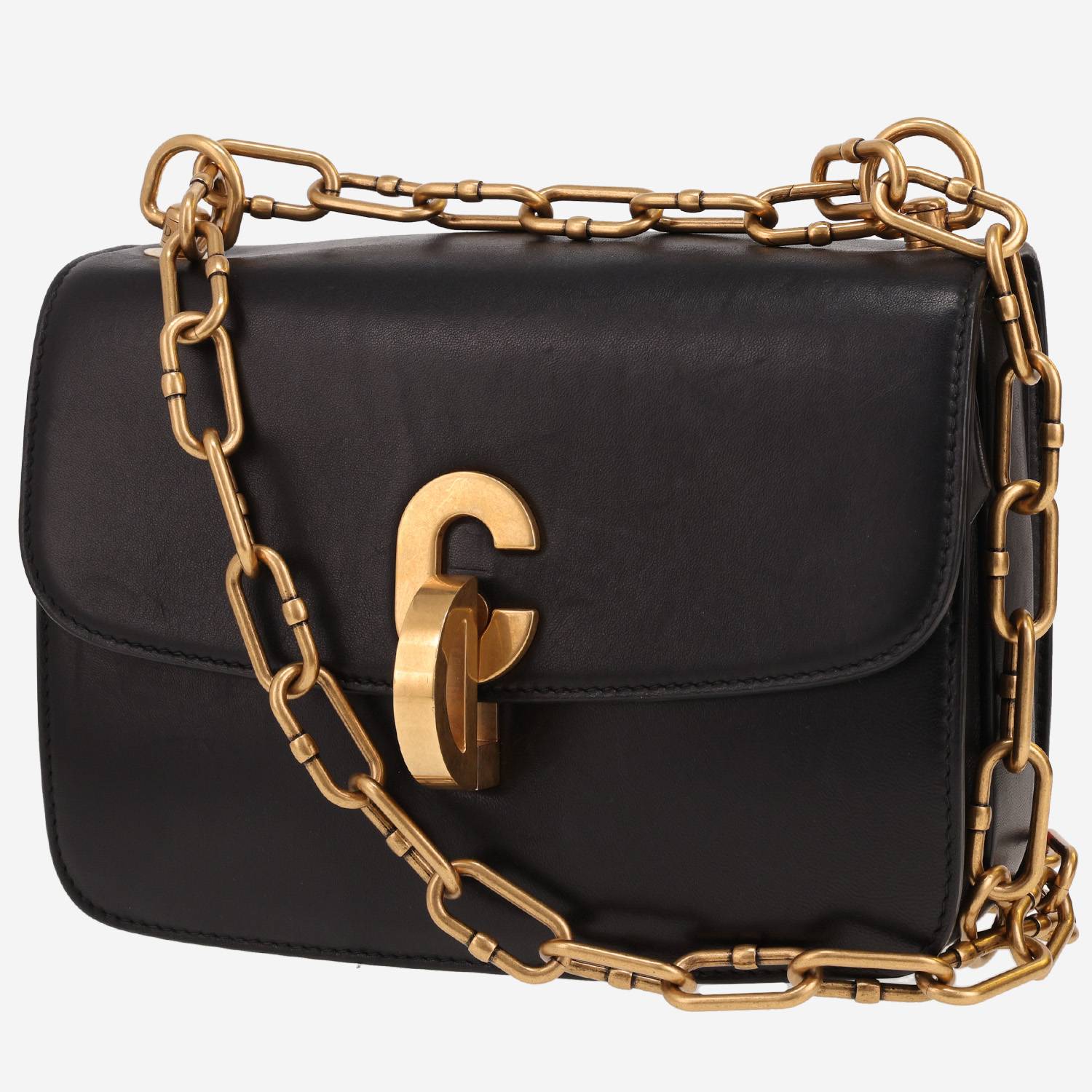 Wonderful Dior Dior21st shoulder bag in black leather, hardware in gilt metal, one chain strap in gilt metal allowing the bag to be worn in the hand or on the shoulder or accross the body.