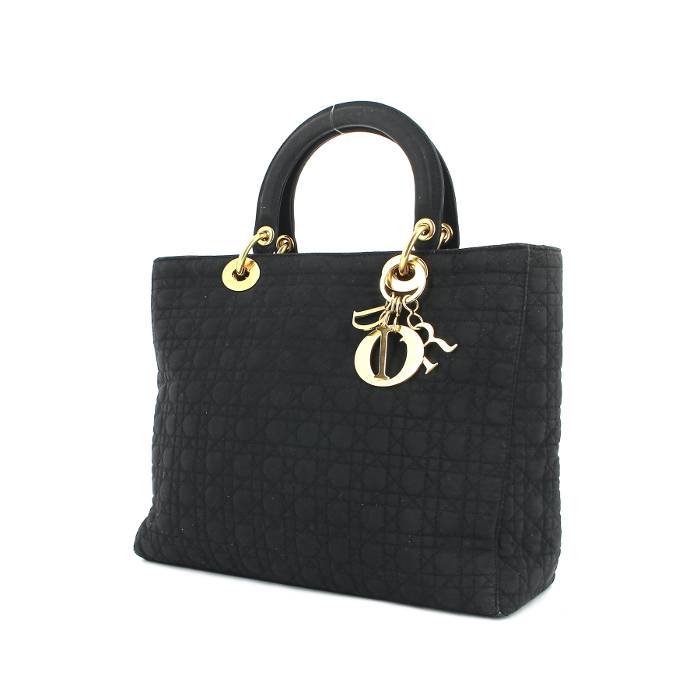 Chic "Lady Dior" handbag in black canvas, hardware in gilt metal , black canvas double handle.