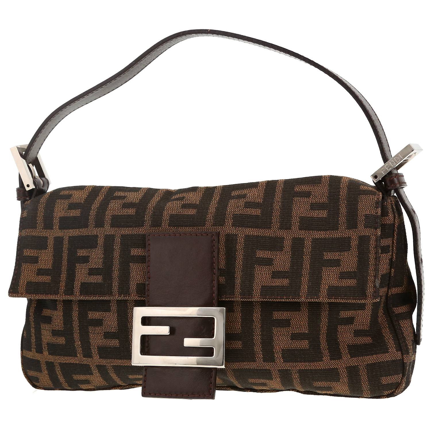 Unavoidable Fendi Baguette handbag in brown logo canvas, hardware in silver metal, one strap in brown leather allowing the bag to be worn in the hand or on the shoulder.