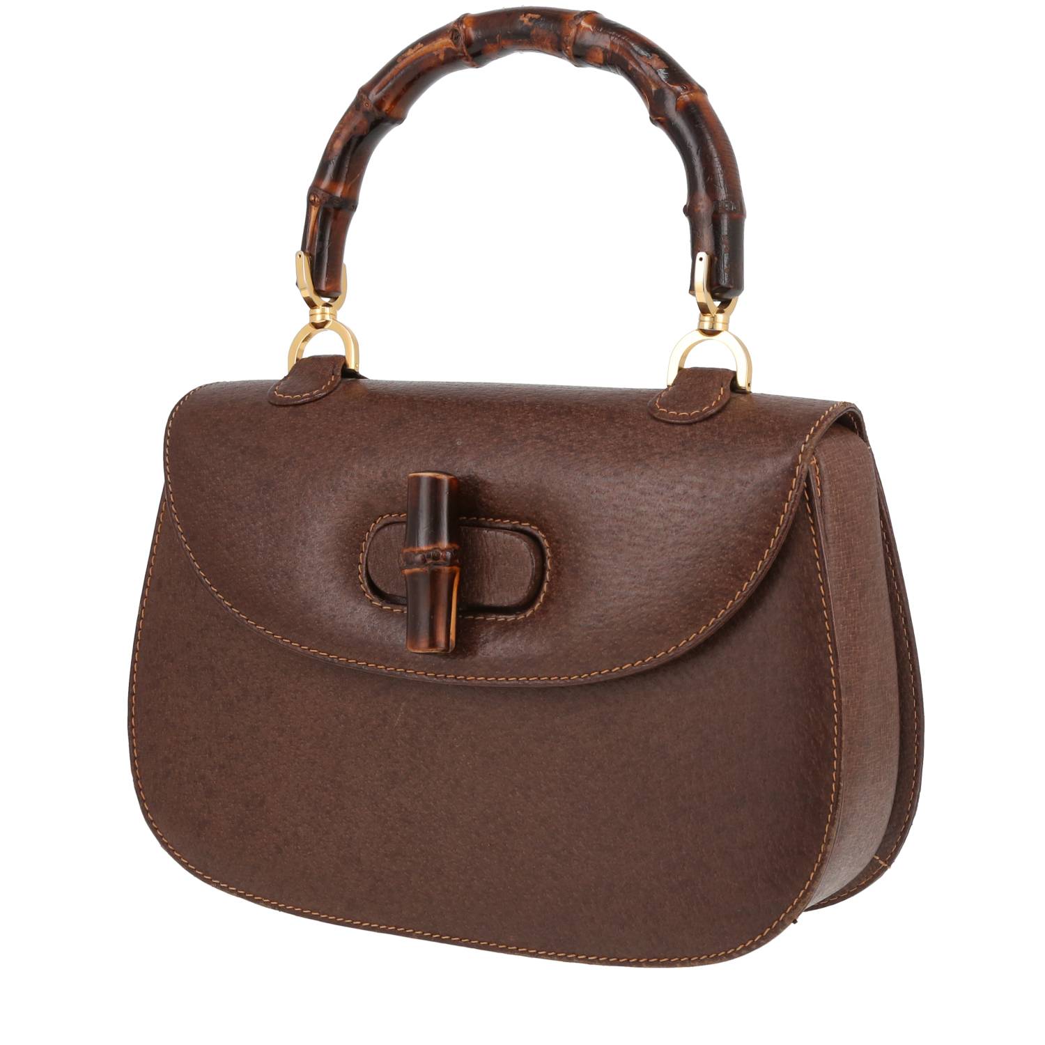 Magnificent Gucci Bamboo handbag in brown Pecari leather, hardware in gilt metal, simple handle bamboo allowing the bag to be worn in the hand.