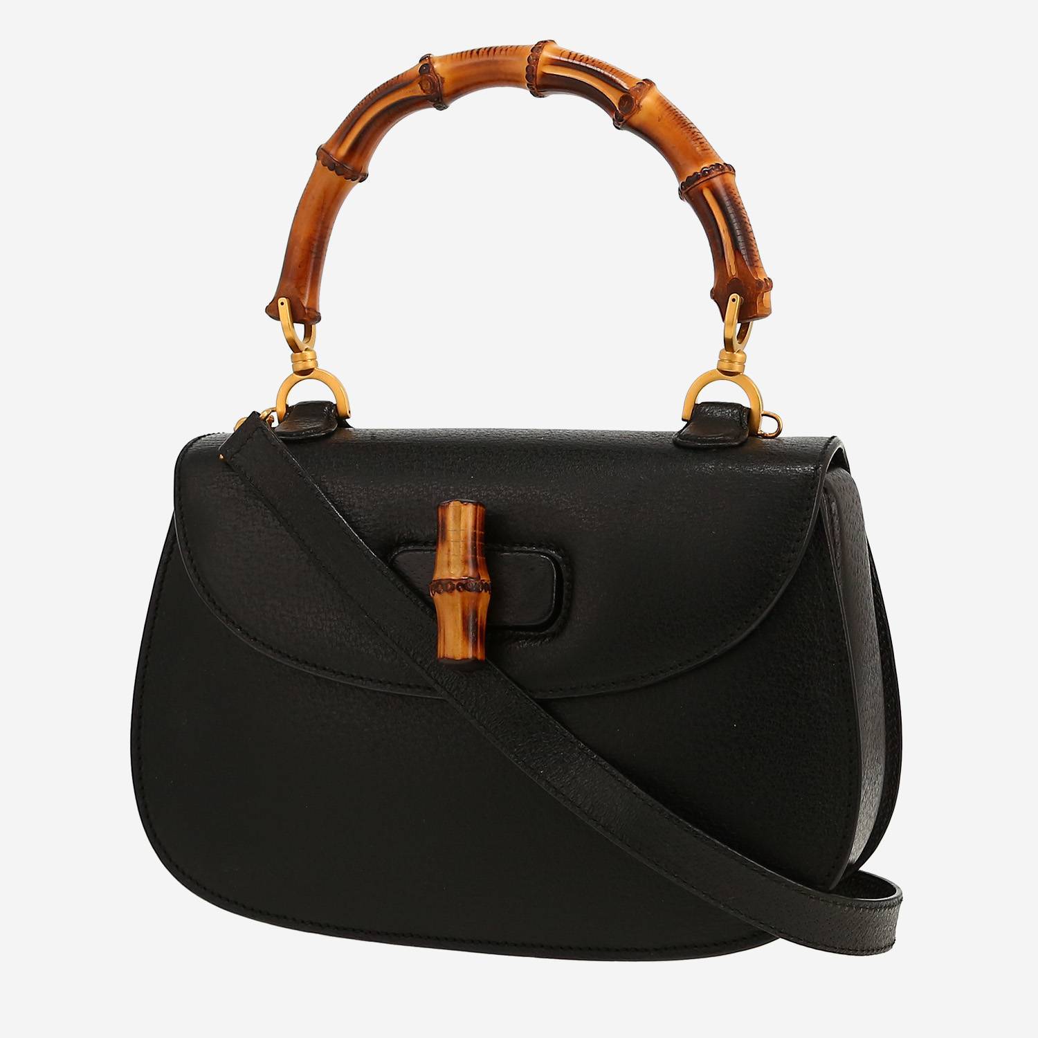 Medium model Gucci Bamboo shoulder bag in black Pecari leather, hardware in gilt metal, simple handle bamboo, double strap in black leather allowing the bag to be worn in the hand or on the shoulder or accross the body.