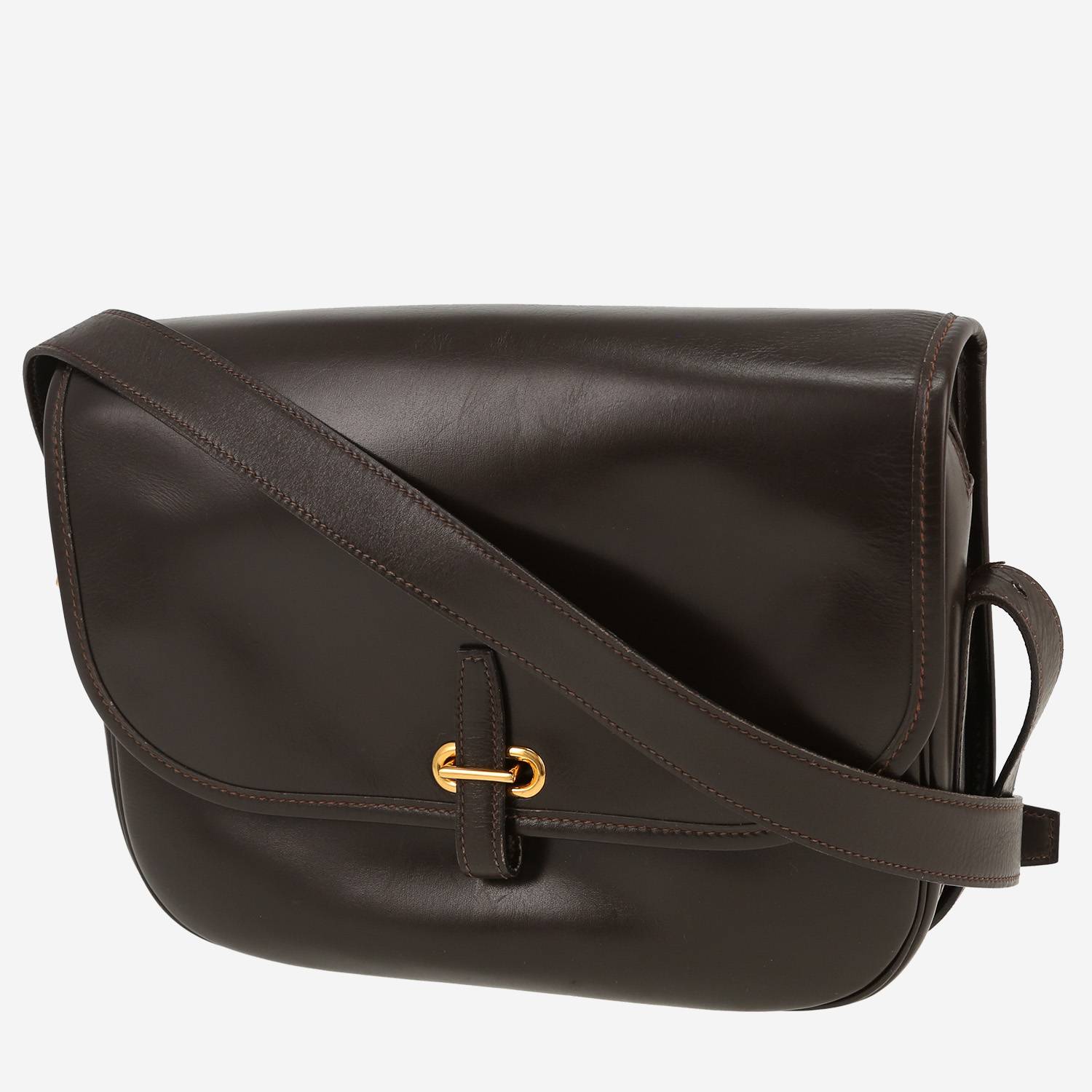 Wonderful Hermès Balle De Golf handbag in brown box leather, hardware in gilt metal, one strap in brown leather allowing the bag to be worn on the shoulder or accross the body.