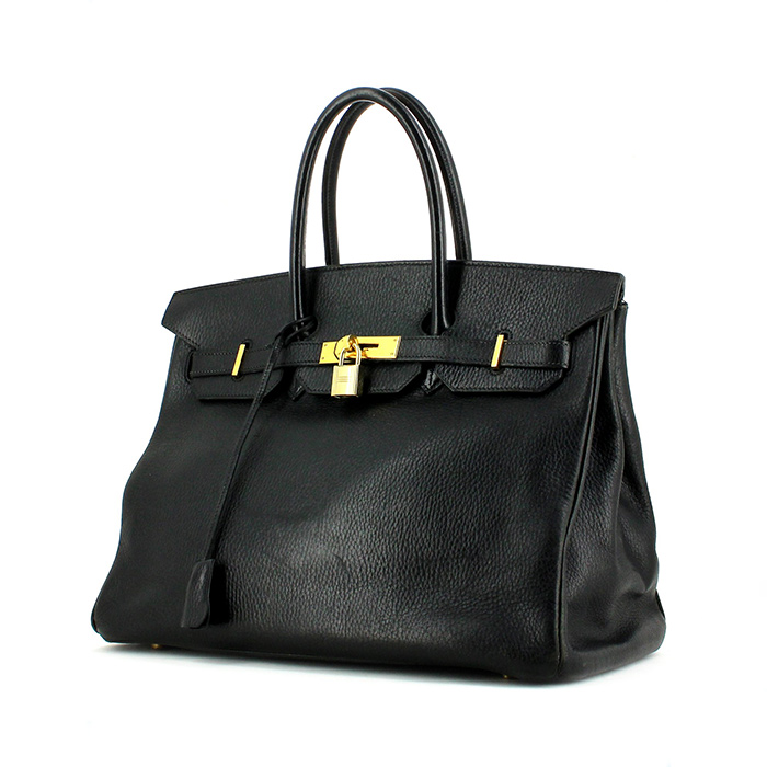 Charming Hermes Birkin 35 cm handbag in black Fjord leather, hardware in gilt metal, double handle in black leather allowing the bag to be worn in the hand.