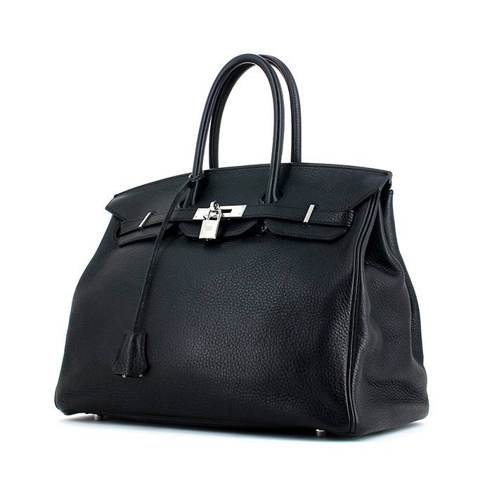 Chic "Birkin 35 cm" handbag in black togo leather, hardware in palladium metal, double handle in black leather allowing the bag to be worn in the hand.