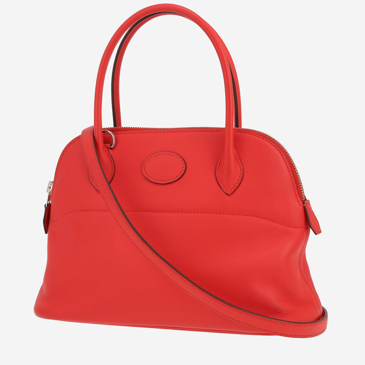 Wonderful Hermès Bolide 27 cm handbag in red Tomate Swift leather, hardware in palladium metal, double handle in red leather, one removable shoulder strap in red leather allowing the bag to be worn in the hand or on the shoulder or accross the body.