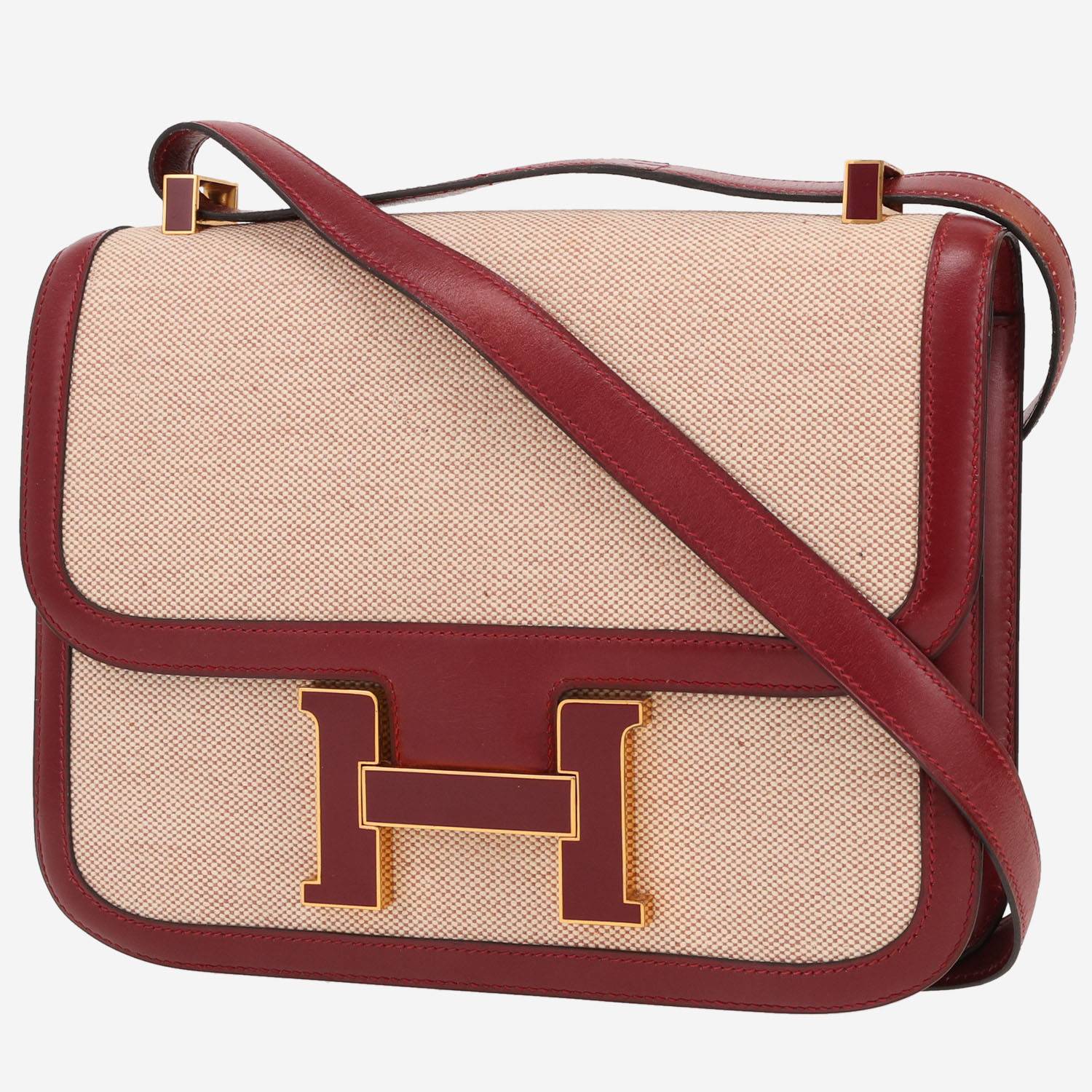 Hermès Constance handbag in beige canvas and red H box leather Collector Square Ref: 43 08 24