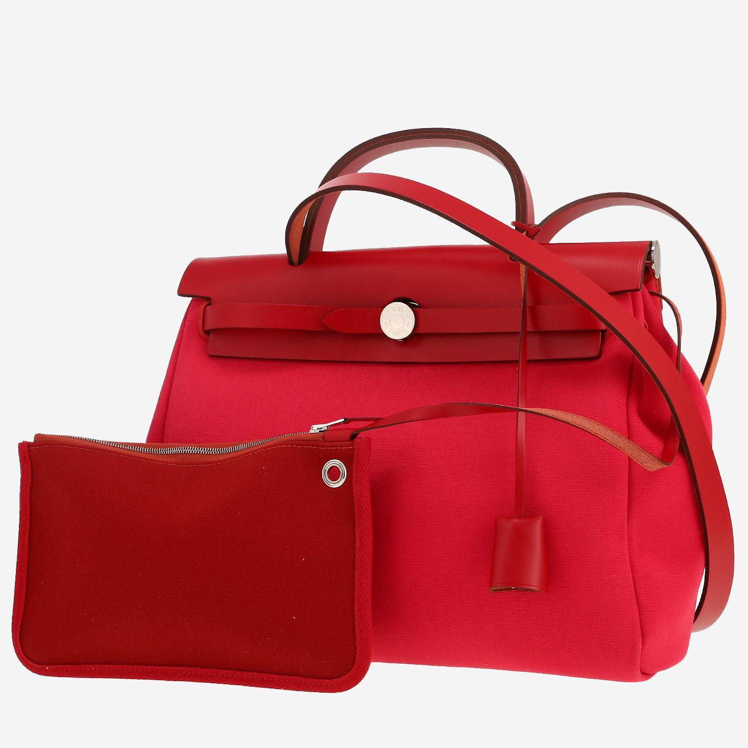 Nice Hermès Herbag handbag in red canvas, hardware in palladium metal, simple handle in red leather, red leather removable strap to be worn accross the body allowing the bag to be worn in the hand or on the shoulder or accross the body.