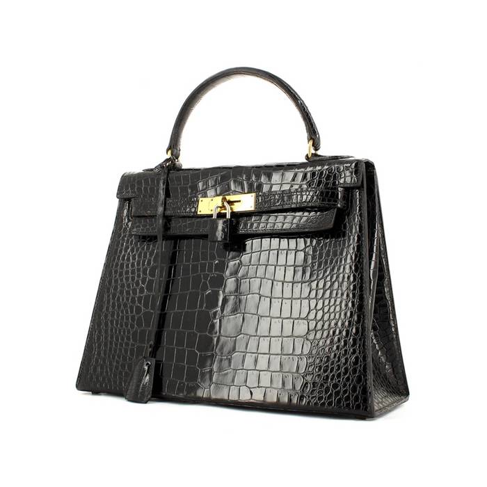 Hermes Kelly 28 cm handbag in black porosus crocodile Collector Square Ref: 32 26 98