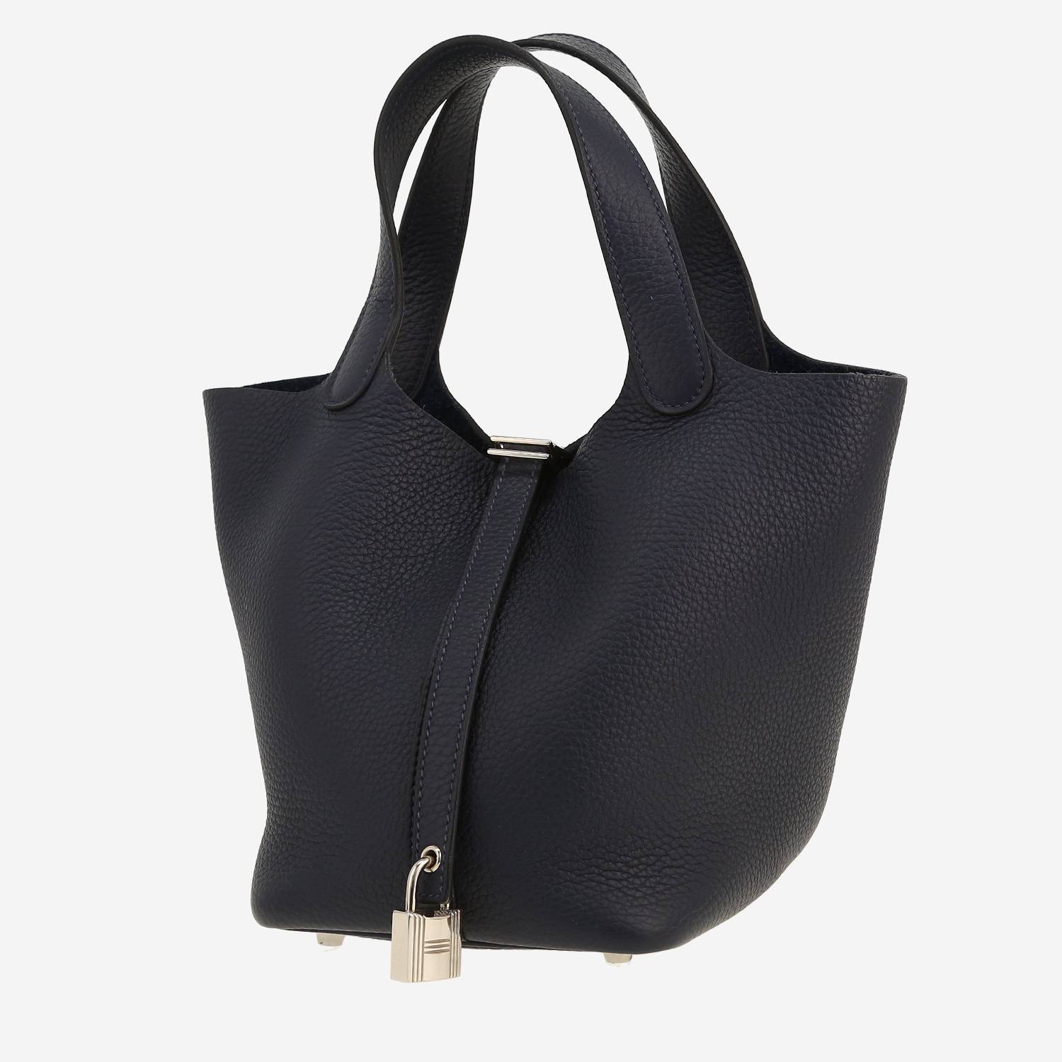 Wonderful Hermès Picotin 18 cm handbag in Bleu Obscur leather taurillon clémence, hardware in palladium metal, double handle in Bleu Obscur leather allowing the bag to be worn in the hand.