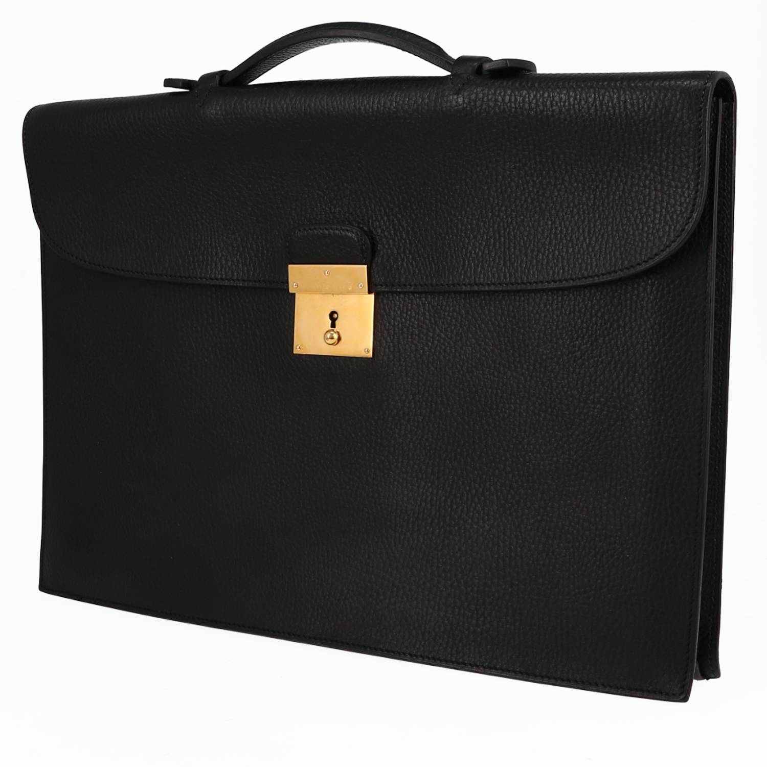 Charming Hermès briefcase in black togo leather, hardware in gilt metal, simple handle in black togo leather allowing the bag to be worn in the hand.