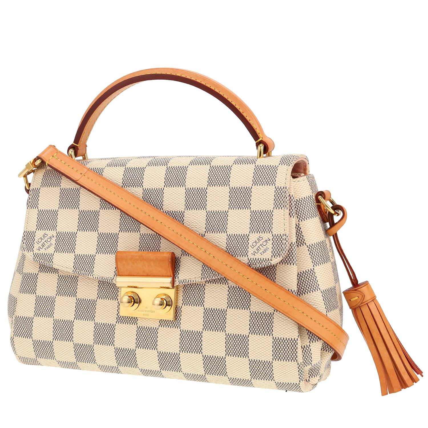 Wonderful Louis Vuitton Croisette shoulder bag in azur damier canvas, hardware in gilt metal, simple handle natural leather, one removable shoulder strap in natural leather allowing the bag to be worn in the hand or on the shoulder or accross the body.