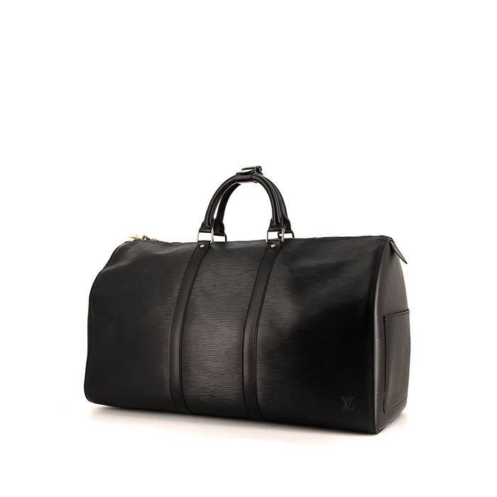 Louis Vuitton Keepall 50 cm travel bag in black epi leather, hardware in gilt metal, double handle in black leather allowing the bag to be worn in the hand.