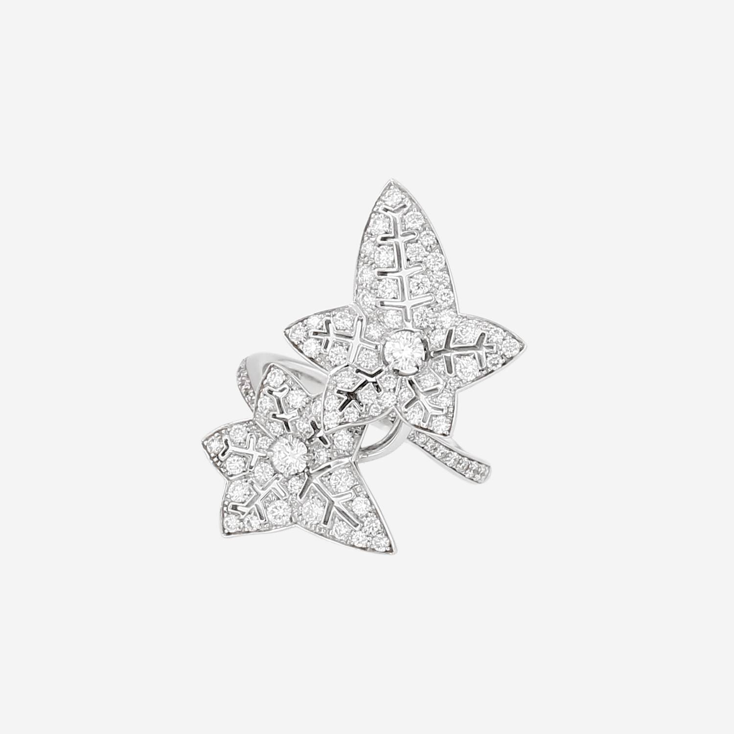 Wonderful Boucheron Lierre de Paris small model ring in white gold diamonds, stylizing an elegant wavy hemstitched foliage carefully paved with brilliant cut diamonds about 0.80 carat, reinforced with on the brilliant cut ring diamonds.