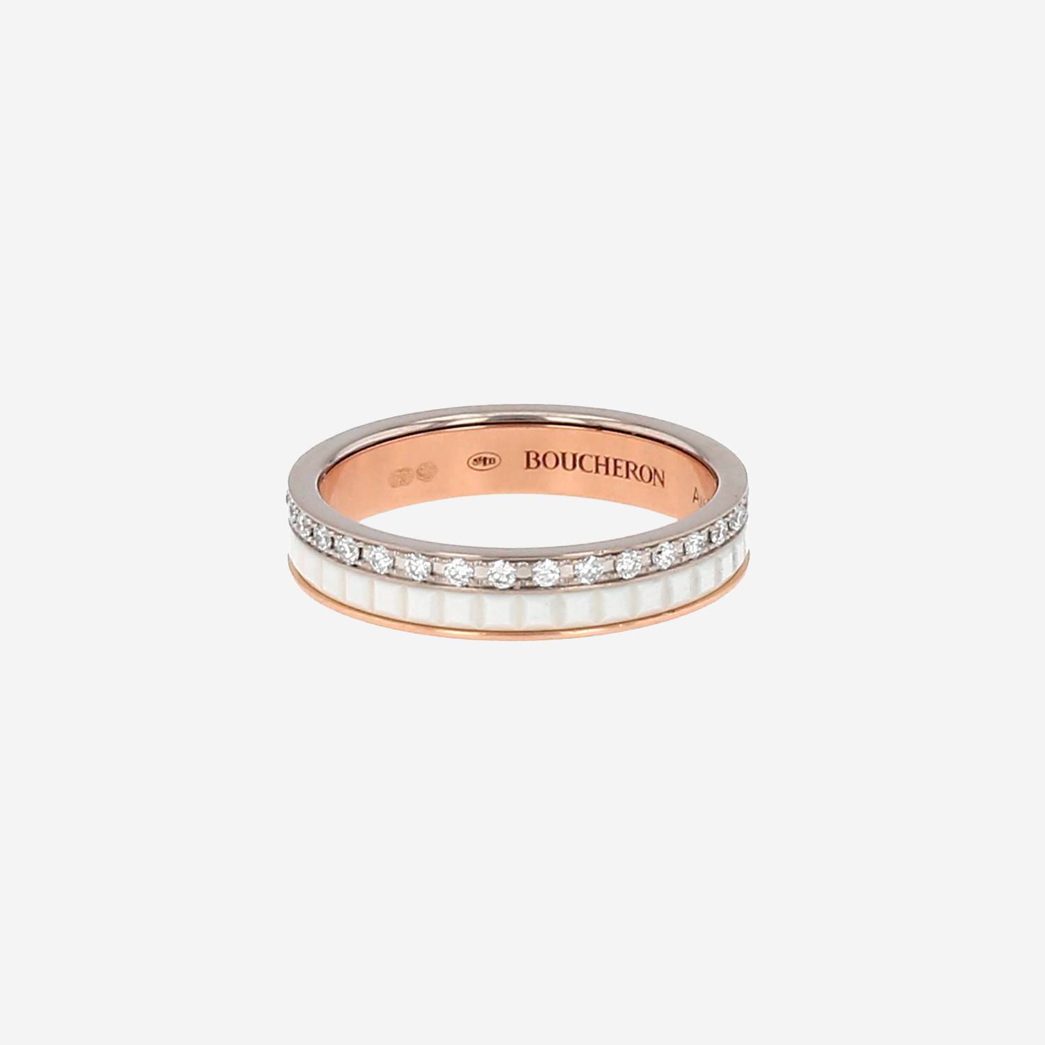 Boucheron Quatre White Edition wedding ring in pink gold, ceramic and diamonds Collector Square Ref: 41 76 06