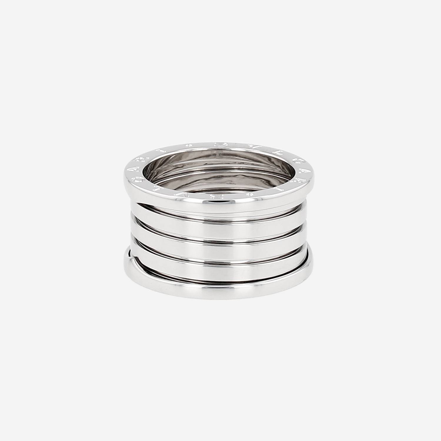 Bulgari B.Zero1 large model ring in white gold, composed of one elegant spiral in white gold, enhanced one engraved border "Bvlgari".