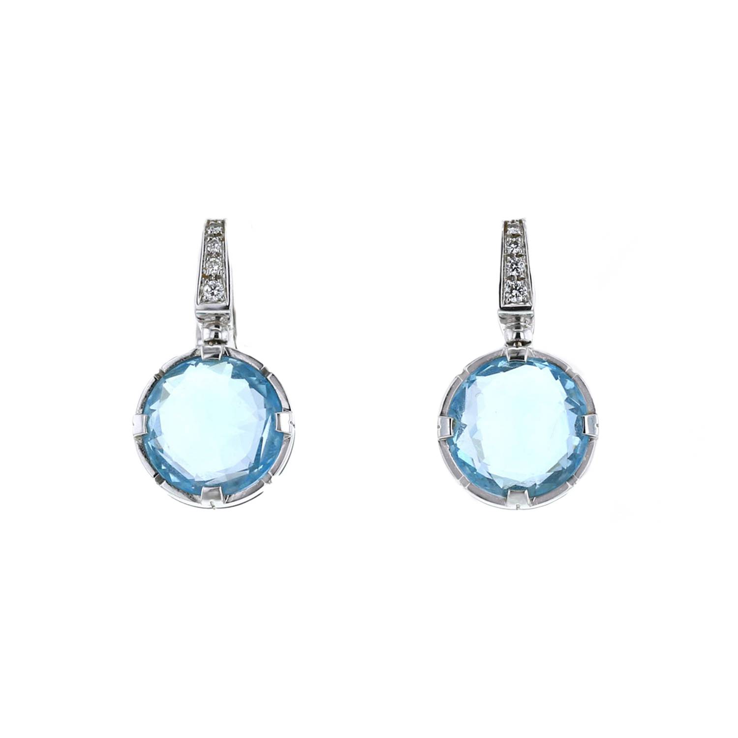 Bulgari Parentesi Cocktail earrings in white gold, in topaz, and in diamonds, composed of of beautiful setting in white gold delicately set with of brilliant cut diamonds about 0.15 carat, decorated with of a important round faceted topaz.