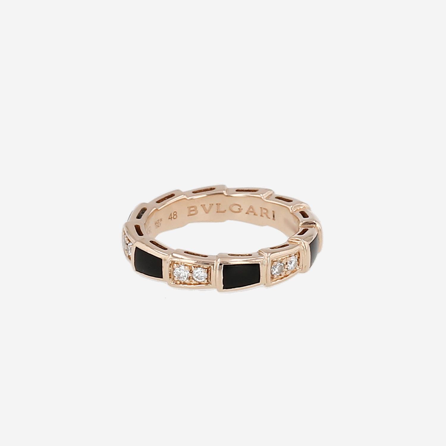 Bulgari Serpenti Viper ring in pink gold, diamonds and onyx Collector Square Ref: 42 82 54