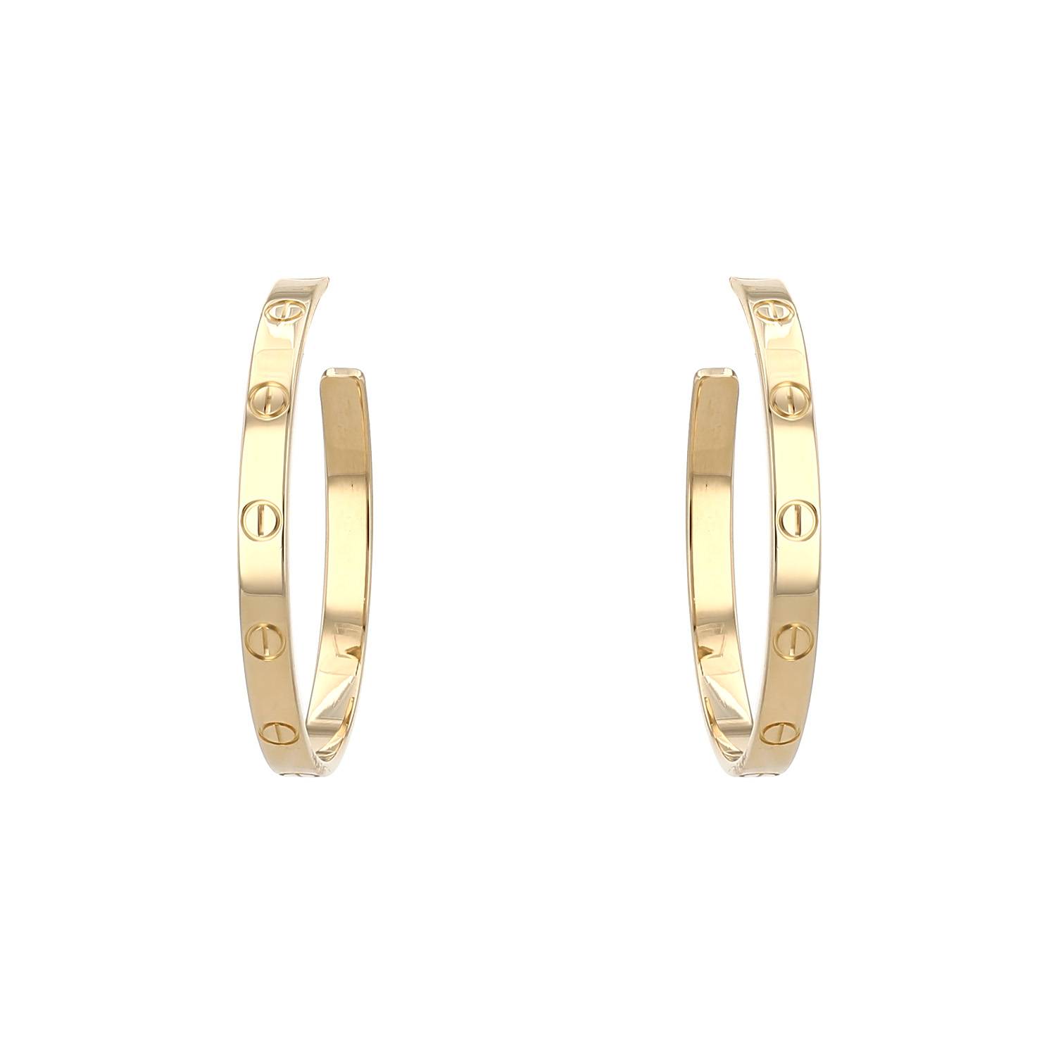 Cartier Love earrings in yellow gold, composed of one elegant smooth sleeves, decorated with of engraved screw patterns.