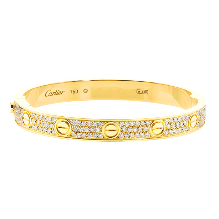 Bracelet in yellow gold anddiamonds, composed of one elegant opening bangle in yellow gold, decorated with 204 very beautiful diamonds brilliant cut weighting a total of 2 carats.